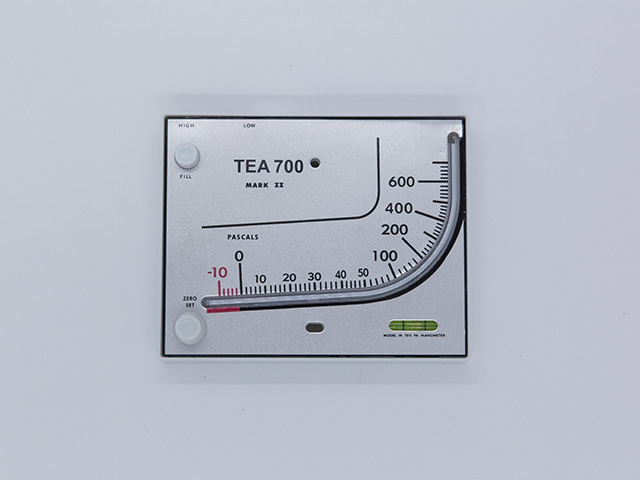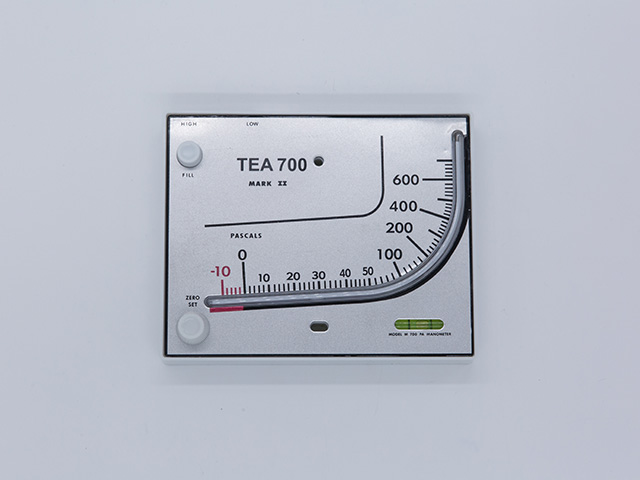 医药行业GMP认证专用仪表;用于测量药厂、电子厂洁净室洁净厂房的正负压差,暖通空调,净化空调,净化台风淋室专用表,洁净空调过滤网压差的检测等,TEA700 系列红油差压计材质:ABS 旋钮:PC 密封件:NBR 工作温度:-40~60℃最大压力:200KPa(2bar) 充液:红油,密度0.786kg/dm3(15℃) 安全性:此压差计有着特殊的结构,避免在过压时液体溢出安装位置:垂直方向本产品压差范围为-10~600Pa,适用用于洁净室或相邻隔间有压差的房间,把压差表垂直安装在墙面上可嵌入式安装与墙面平行,也可直接固定在墙面上。安装时应注意不应离回风口、排风口或送风口太近的位置,以免造成指示误差。压差表上有HIGH(高压口)和LOW(低压口),通常把压差表放置于相对高压的房间